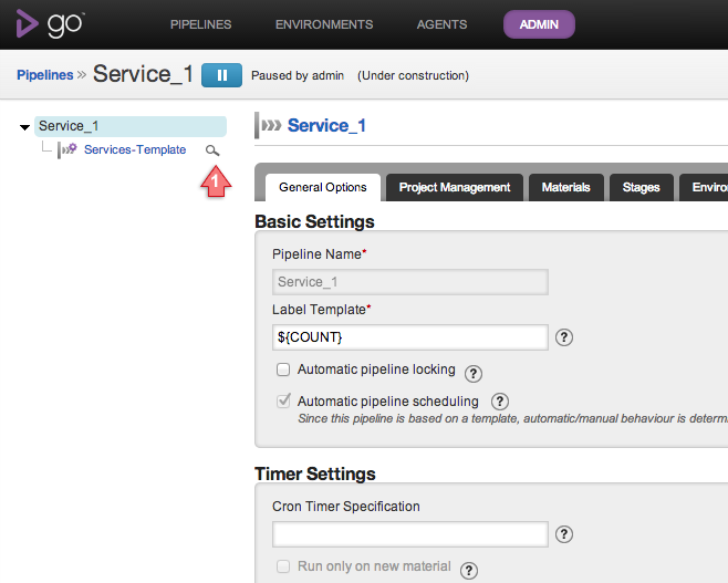 As an example, assume that there is a pipeline group called "my-app" and it contains a pipeline called "app-trunk" which builds the application from trunk. Now, if we need to create another pipeline called "app-1.0-branch" which builds 1.0 version of the application, we can use Pipeline Templates as follows